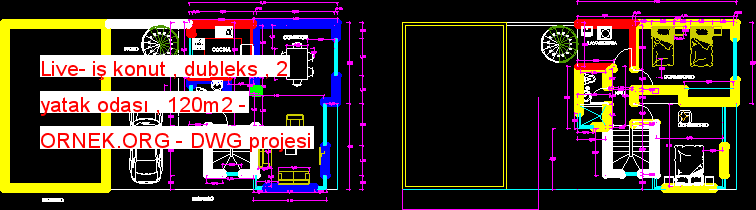 Live- iş konut , dubleks , 2 yatak odası , 120m2 dwg projesi