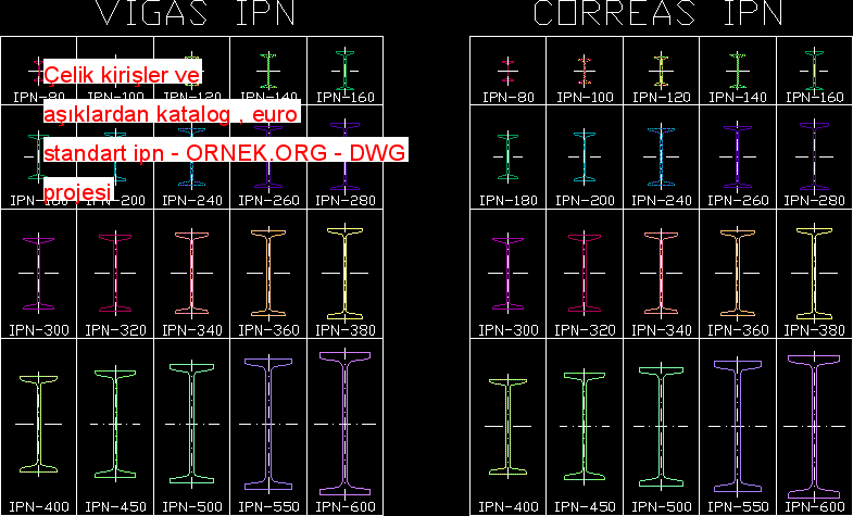 Çelik kirişler ve aşıklardan katalog , euro standart ipn dwg projesi