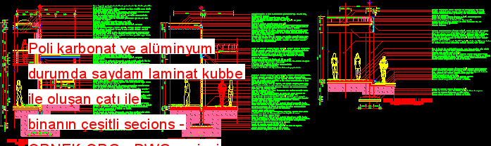 Poli karbonat ve alüminyum durumda saydam laminat kubbe ile oluşan çatı ile binanın çeşitli secions mimari autocad projesi